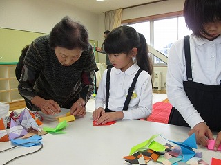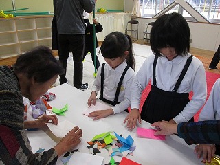 伝承遊びのコーナーは、『折り紙』『竹馬』『お手玉』