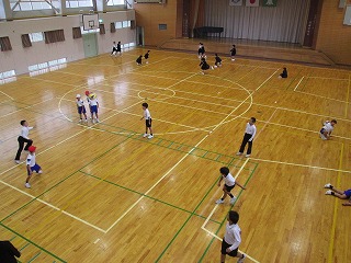 体育館は、1~3年生がドッジボールをしながら、体を