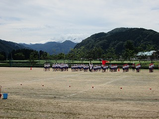 久しぶりに晴れ、全校練習をしました。
