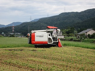 学校の周りも、稲刈りが始まりました。
