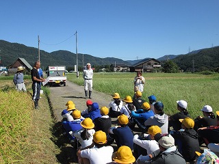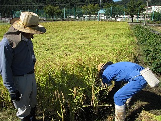 知る』です。育友会会長、保護者、地域の支援者の応援の基、稲刈りは