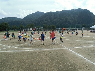 スタートしました。子ども達はあっという間に汗びっしょりです。