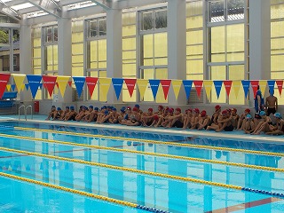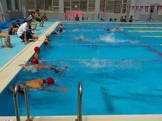 水泳交歓会で、山麓4校5・6年生が交流しました。