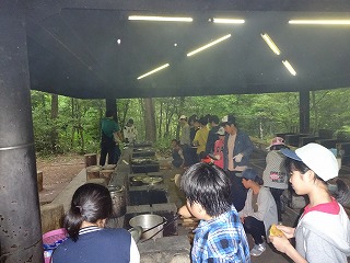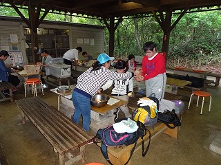 野外炊飯では、『かまど係』『お米係』『カレー係』に分かれて