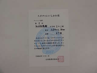 2年生は、『スポチャレ40m チャレンジ部門』で、見事5位に