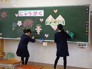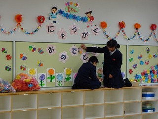 新6年生が、入学式の準備のために