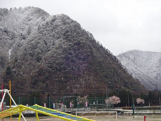桜の花びらと 雪が