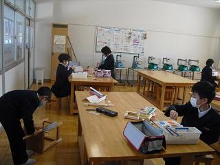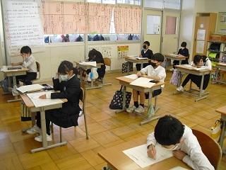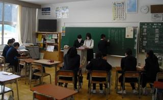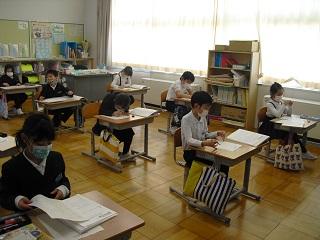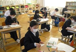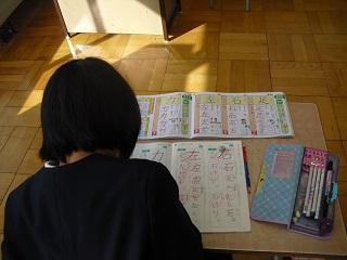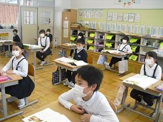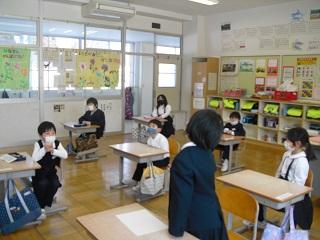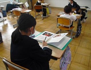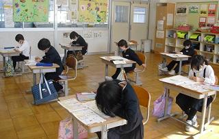 1年生の国語と学級活動の様子。国語は漢字の練習をしていました。1年生では80字の漢字を習います。学級活動では新入生へのメッセージにはどんなことを書いたらいいかを発表しあっていました。