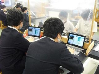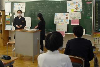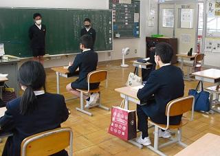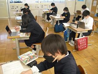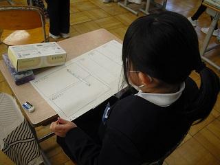2年生の学級活動。キャリアパスポートを使って、2年生の振り返りを行っていました。