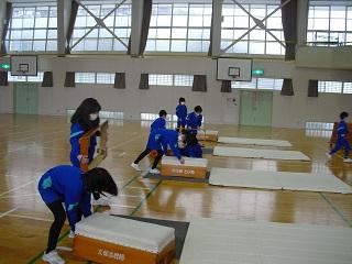 5年生。体育の授業の様子です。上手に台上前転をしていました。