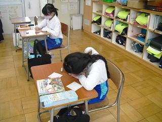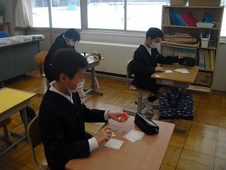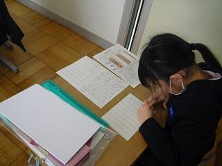 1~5年生は、たて割り班でお世話になった6年生にメッセージを書きました。