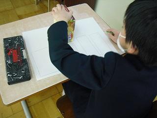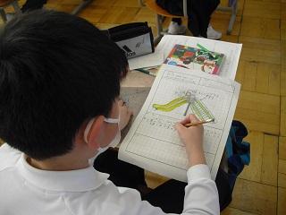 2年生の算数。「箱の形を調べよう」の学習です。今日は箱の全ての面を写して、数や形、大きさなどを調べていました。