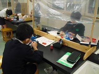 3年生の理科。今まで習ったことを生かしたおもちゃづくりをしていました。