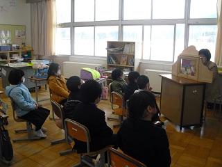 1年生は終わりの会のときに、司書さんに紙芝居を読んでもらいました。