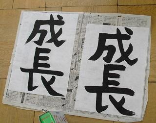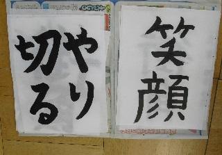 6年生の書写。自分の一年間を振り返って感じる文字を書いていました。
