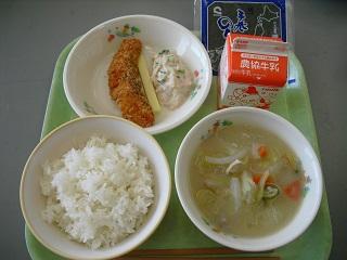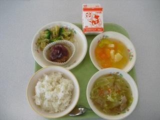 今日の給食は6年生が考えた献立でした。豆腐入り手作りハンバーグ、ブロッコリーのおかか和え、野菜スープ、フルーツポンチでした。6年生は放送で、栄養のバランスやいろどり、地産地消のことも考えて献立をつくったこと、自分たちの献立を給食に登場させてもらったことへの栄養教諭や調理員さんに対する感謝気持ちなどを伝えました。みんなでおいしくいただきました。ありがとうございました。