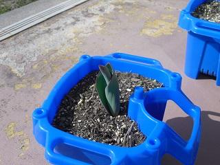 きれいな青空が広がる日になりました。1年生が植えたチューリップがずいぶん大きくなっていました。