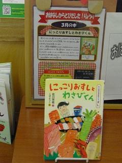 今日の給食は、手巻き寿司とかす汁でした。今日は「おはなしからとびだした!りょうり」で「にっこりおすしとわさびくん」(作:佐川芳枝、絵:こばようこ)から、にっこり手巻き寿司が登場しました。ツナサラダやサーモンフライを巻いて食べました。とてもおいしかったです。