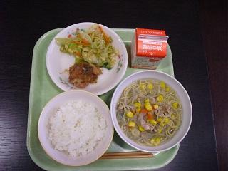 今日の給食は、ユーリンチー、中華サラダ、みそラーメンでした。ユーリンチーは揚げた 鶏肉 に刻んだ 長ネギ と醤油ベースのタレをかけた中華料理です。 今日もおいしくいただきました。
