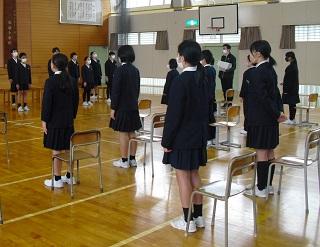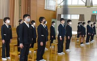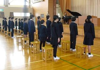 2022年3月15日 18時30分卒業式の練習が始まっています。みんな緊張感を持って練習していました。