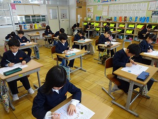 2年生、国語のテストに集中して取り組んでいます。