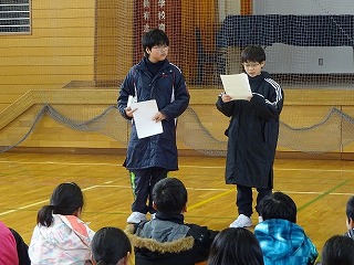 図書委員会の子ども達が、縦割り班で読み聞かせに