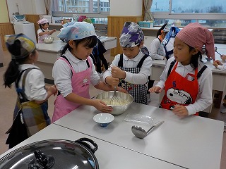 1年生が、さつまいもを使って『むしケーキ』を作りました。