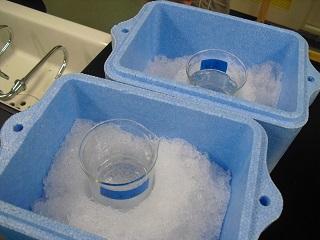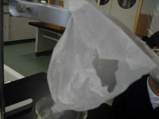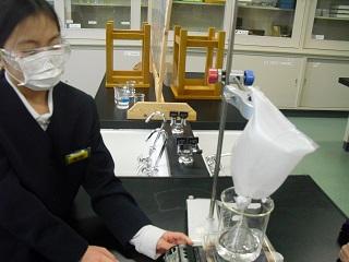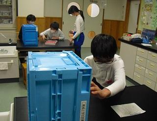 5年生の理科。水にとけた食塩やミョウバンを取り出す実験をしていました。