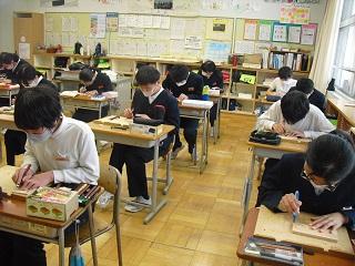6年生の図工。卒業制作をしているところです。