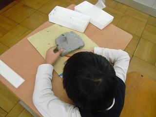 1年生の図工。粘土で家を作ったり、動物を作ったりしていました。