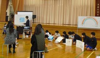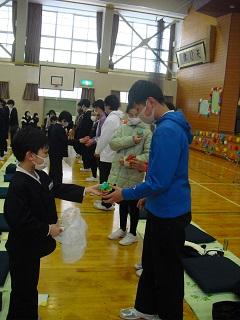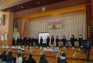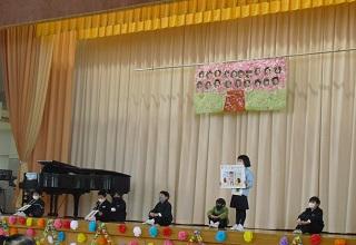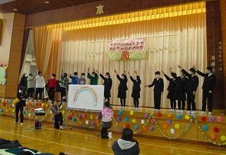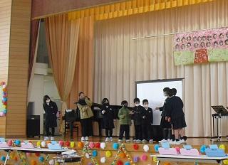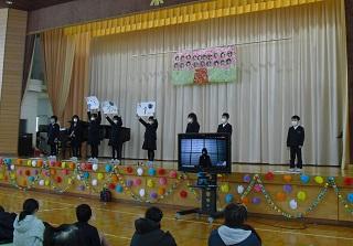 今までお世話になった6年生に感謝の気持ちを伝えようと6年生を送る会を行いました。5年生が中心となって企画・運営を行いました。各学年の発表も工夫を凝らしたものでした。6年生に感謝の気持ちが伝わったと思います。また、6年生からは、在校生にむけて劇と合奏、メッセージが送られました。劇は助け合うことの大切さが込められたものでした。