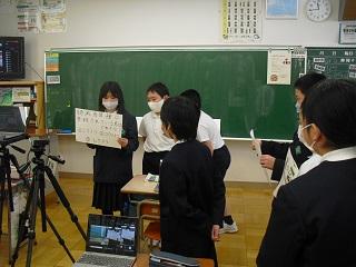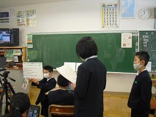 5年生は河内小学校の5年生と、オンラインで交流をしました。自己紹介の後、SDGsについてクイズを出し合いました。