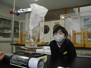 4年生の理科。水を熱した時のあわの正体は何かを実験で確かめていました。