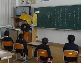 今日の朝学習の時間は、お話キャラバン隊でした。子どもたちが楽しみにしている活動の一つです。