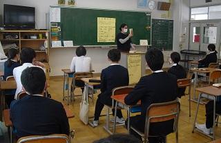 4年生の社会。輪島塗りについて学習していました。