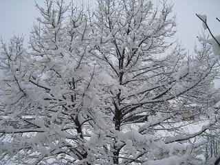 今日もたくさん雪が積もりました。学校のクルミの木の枝の雪がとてもきれいでした。