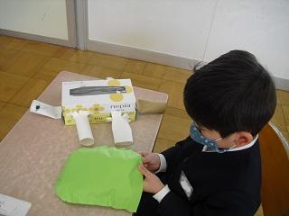 1年生がつくったブローチを6年生にプレゼントしました。