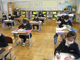 2年生の算数。習ったことの復習をしていました。みんな集中して取り組んでいました。