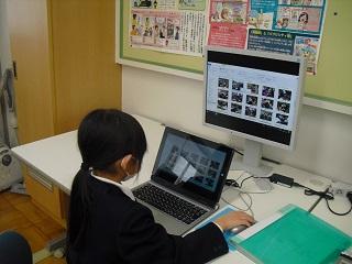 生活科。1年生時に、一番思い出に残っていることの写真を選んでいるところです。