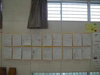 今日は6年生の卒業発表会を行いました。劇、合奏、体育や英語の発表など子どもたちのこれまでの学びの成果を見ていただくことができました。体育館の壁には、社会や理科、算数でつくった新聞や模造紙などを掲示してあります。