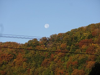 きました。(秋の季語:山装う 明け方の月と紅葉が絶妙です)