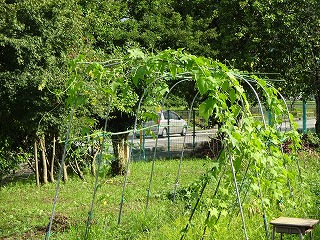 学校園のヘチマの棚の様子です。