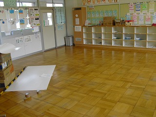 方々で教室のワックスがけを行いました。