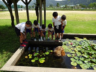 自然の中で遊ぶ力が抜群な2年生が、何やら池を覗き込んでいます。