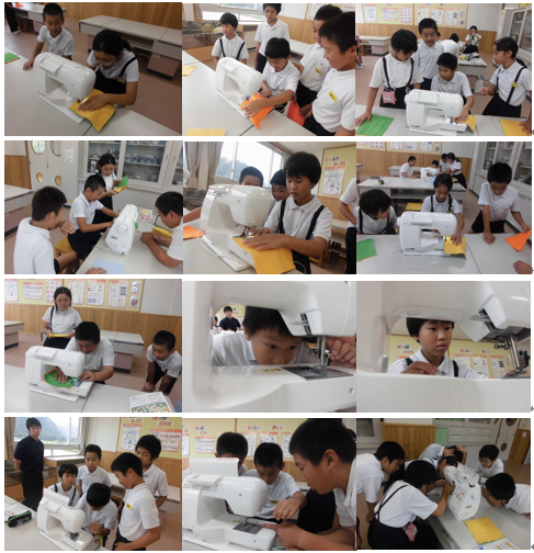 家庭科では、初めてのミシンの学習をしました。ミシンの使い方を学んだ後、両手で左右にコントロールしながら布を前に送る練習をしたり、直線や曲線をていねいに縫ったり、多くのことに挑戦しました。初めてで難しさを感じる子も多かったようですが、23回やってみると徐々に慣れてきたのか、少しずつ上手になっていくのが目に見えて分かりました。また、上糸と下糸をつける作業も全員がクリアしました。これからエプロンを作っていきますが、自分で準備して作業して、進めていけるのではないでしょうか。