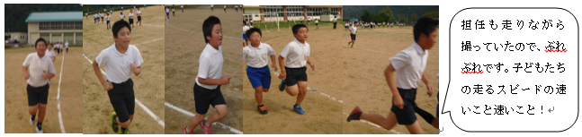 長距離走記録会に向け、長休みの限られた時間ですが、練習をがんばっています。その日のコンディションにより、調子は変わると思いますが、『自分に負けない』ことを忘れずに、目標に向けてがんばってほしいです。どうがんばるかによって、得られるものは変わってくると思います。結果をおそれず、11人がもてる力を出し切ってほしいです。