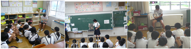 さて、週間中の図書委員の取り組みとして、全学年への読み聞かせが行われました。緊張した面持ちの委員さんたちでしたが、聞いてくれた人たちが喜んでくれてよかったですね。