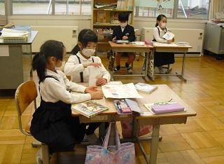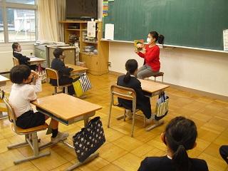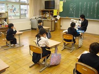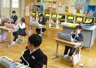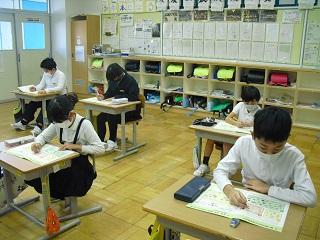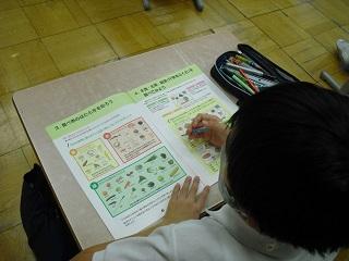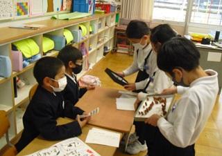 1年生の国語の授業。ものの名前についての学習です。楽器屋さんにはどんながっきがあるか、お菓子屋さんにはどんなお菓子があるのかなどカードに書いていました。