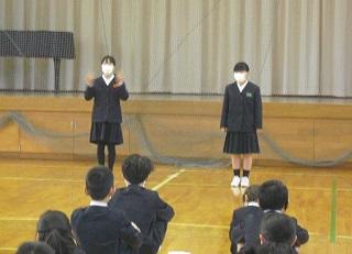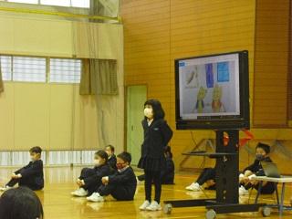 2021年12月17日 13時00分今日の鳥越っ子集会は、2年生の学習発表会でした。国語科の「お話のさくしゃにらろう」の学習です。登場するのは2匹のネズミ。2匹の関係や年齢、あらすじなども自分で決めます。一人ひとり設定が異なっていて、どんなお話なのか楽しみになりました。大きな声で、ジェスチャーもつけて発表することができました。