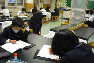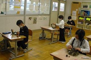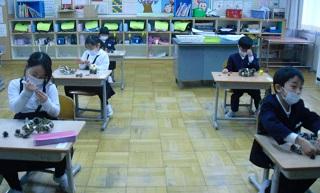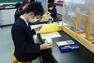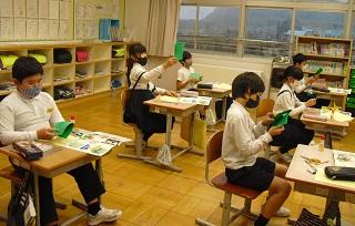 5年生の理科。もののとけ方の学習です。食塩や砂糖が水にどのようにとけていくのかを観察していました。